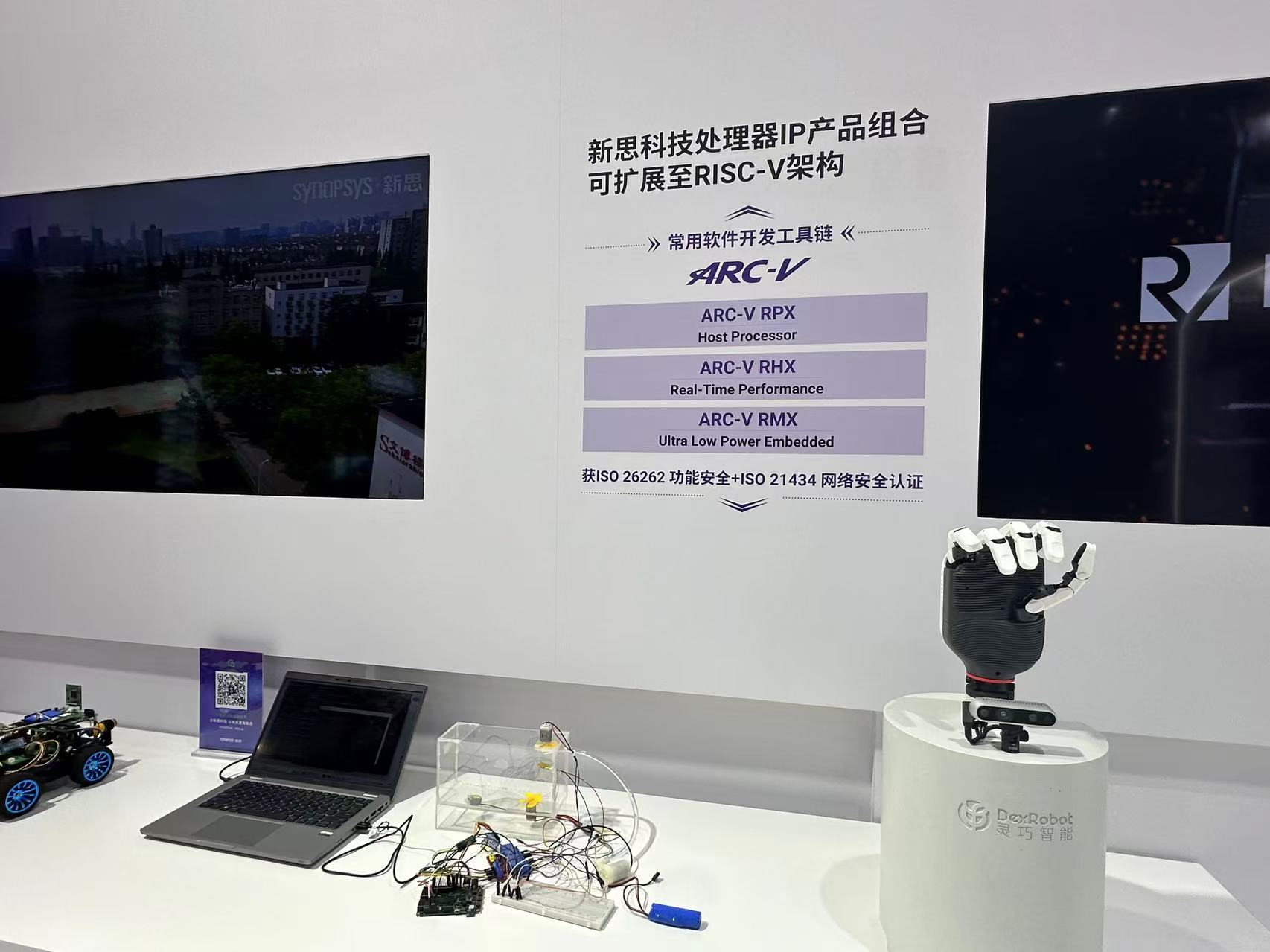 新思科技也展示了其EDA+IP方案等在灵巧手的应用。这款灵巧智能的五指灵巧手 DexHand021 量产版可通过拍摄和穿戴设备实现单手玩魔方、一手抓多物、使用常用工具等功能。