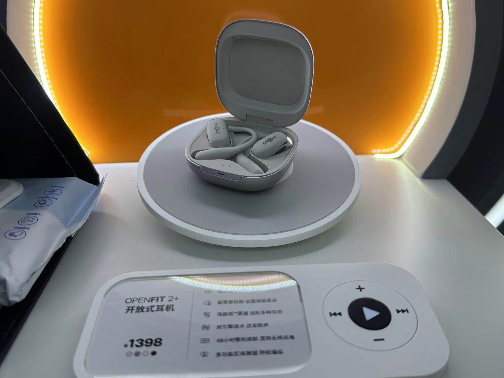 开放式耳机品牌Shokz韶音首次参加进博会,展示了耳夹系列、耳挂系列及后挂系列三大产品线,包括OpenDots ONE、OpenFit 2+以及OpenRun Pro 2、OpenSwim Pro等旗舰产品,呈现开放声学技术的多元多场景应用。